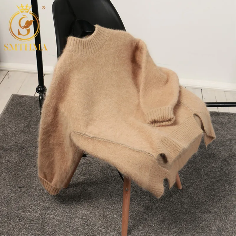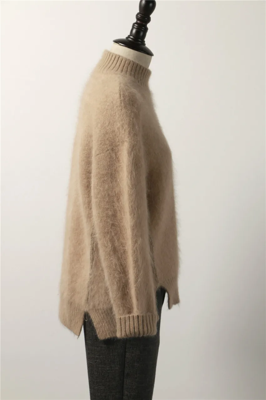 Special Offer Женский кашемировый свитер, серо коричневый асимметричный свободный вязаный повседневный пуловер с высоким воротом и длинным рукавом, осе... Discount 35% Today!