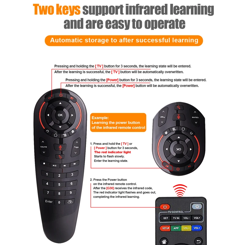 Product Name: G30 g30s fly Air Мышь голосового air Мышь 6 осевой гироскоп 2,4 ГГц интеллектуальный пульт дистанционного управления Управление для xiaomi mi box 3 s коробка...