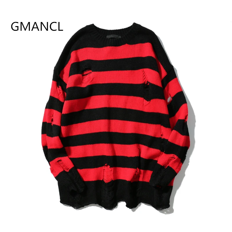 Special Offer GMANCL, два цвета, мужской свитер с дырками, осень, новый, винтажный, негабаритный, высокое качество, свободный, хлопок, на каждый день, мужские п... Discount 30% Today!