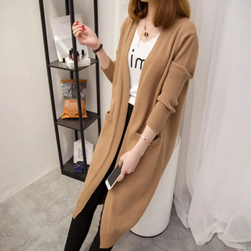. [Скидка 49%] Купить Длинный свитер с длинными рукавами, куртка, новый осенний зимний женский однотонный Кардиган большого размера, свитер A342 Цена Дешево.