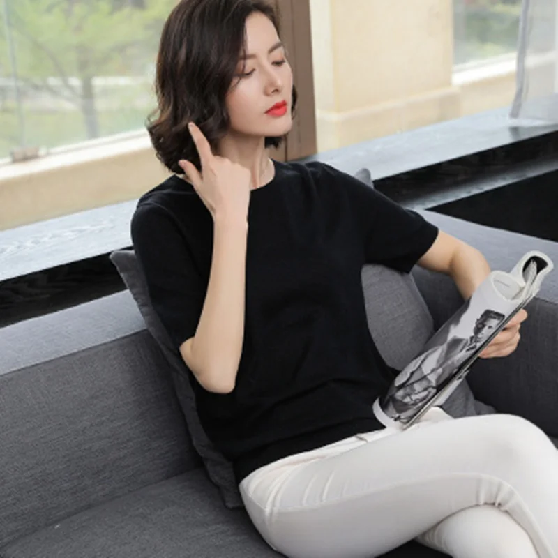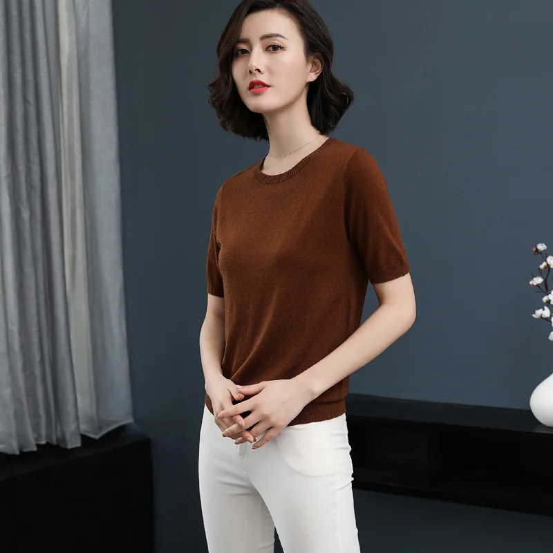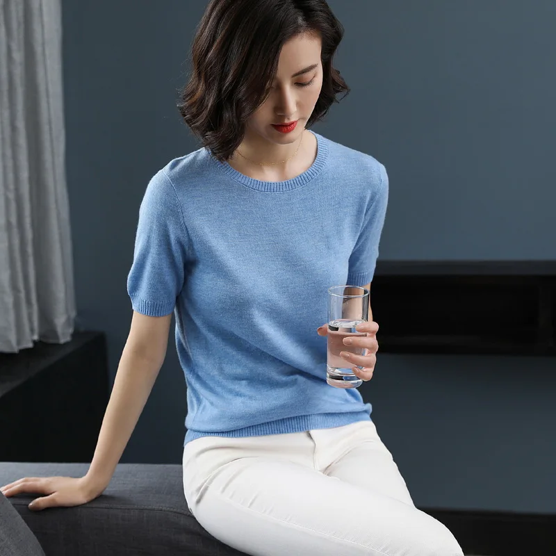 . [Скидка 62%] Купить Zocpt Женский Повседневный вязаный свитер с коротким рукавом весна осень лето кашемир смешанный o образный вырез сплошной цвет пуловеры тройн... Продажа Дешево.