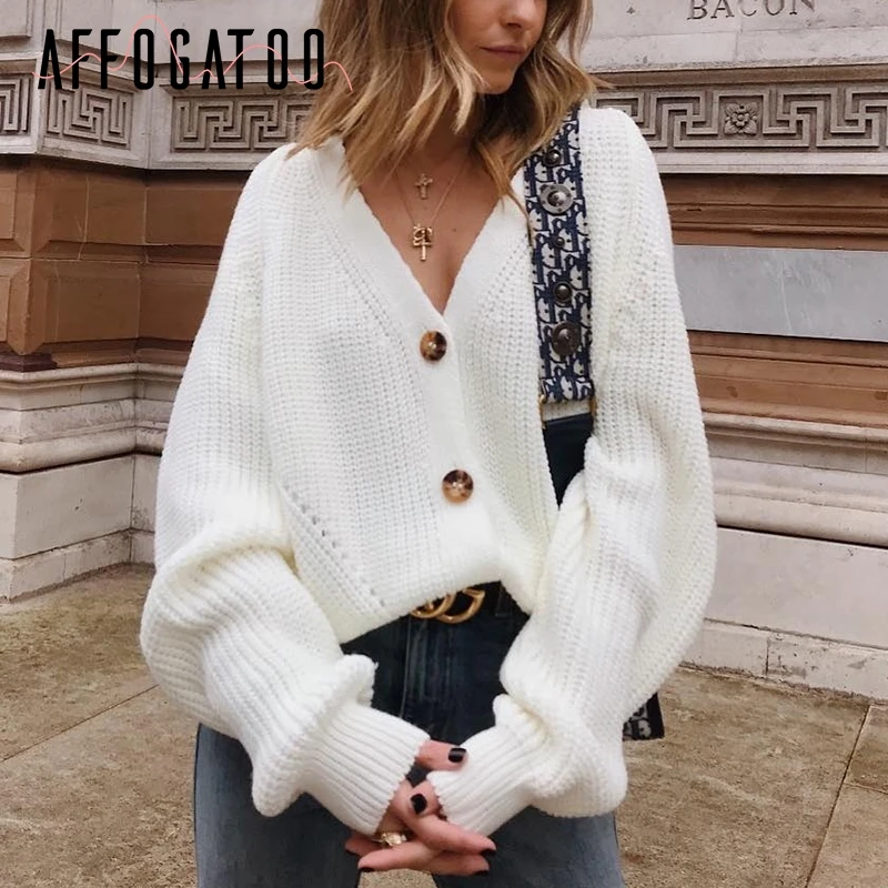. [Скидка 49%] Купить Afogatoo, сексуальный вязаный белый свитер с v образным вырезом, кардиган, Женский Повседневный Кардиган с пуговицами, рукав «летучая мышь», эле... Цена Дешево.