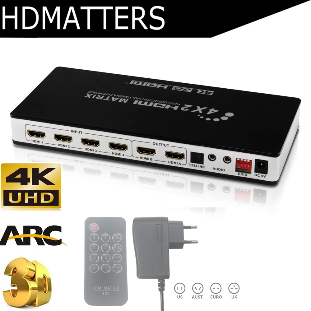 Special Offer HDMI матричный 4X2 Переключатель сплиттер с toslink и стерео аудио 4k X 2 K 30 HZ поддерживается Discount 24% Today!