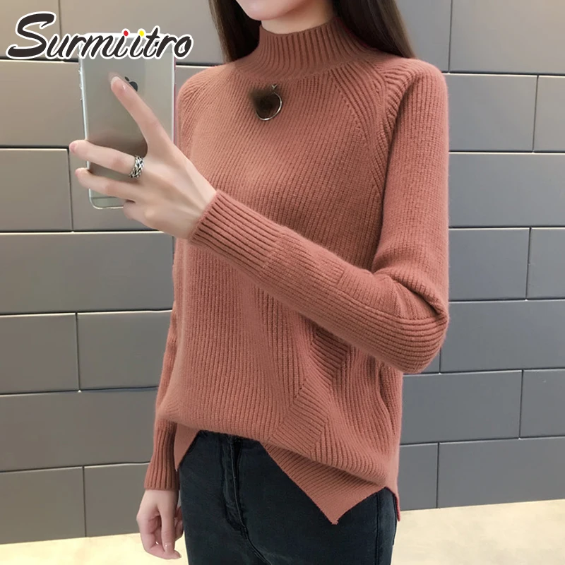 Special Offer Surmiitro корейский вязаный свитер женский Водолазка 2019 осень на зиму, теплый, для женщин длинный рукав Джемпер трикотажный пуловер женский Discount 45% Today!