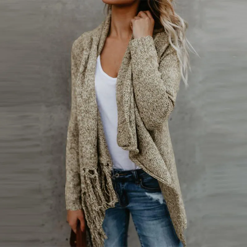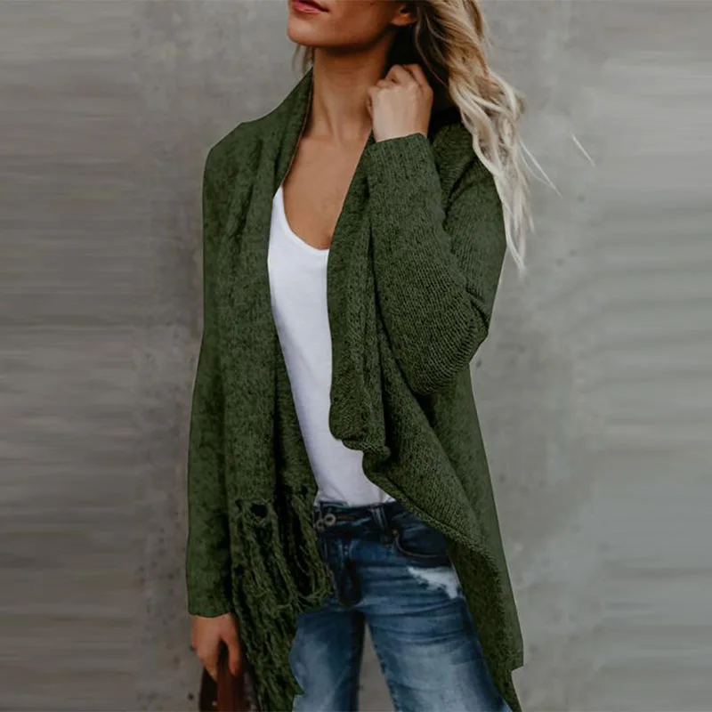. [Скидка 45%] Купить Кардиган, Свитер, Осенний женский свитер с длинным рукавом, Свободный Подол, кардиган с кисточками, свитер, пальто размера плюс Продажа Дешево.
