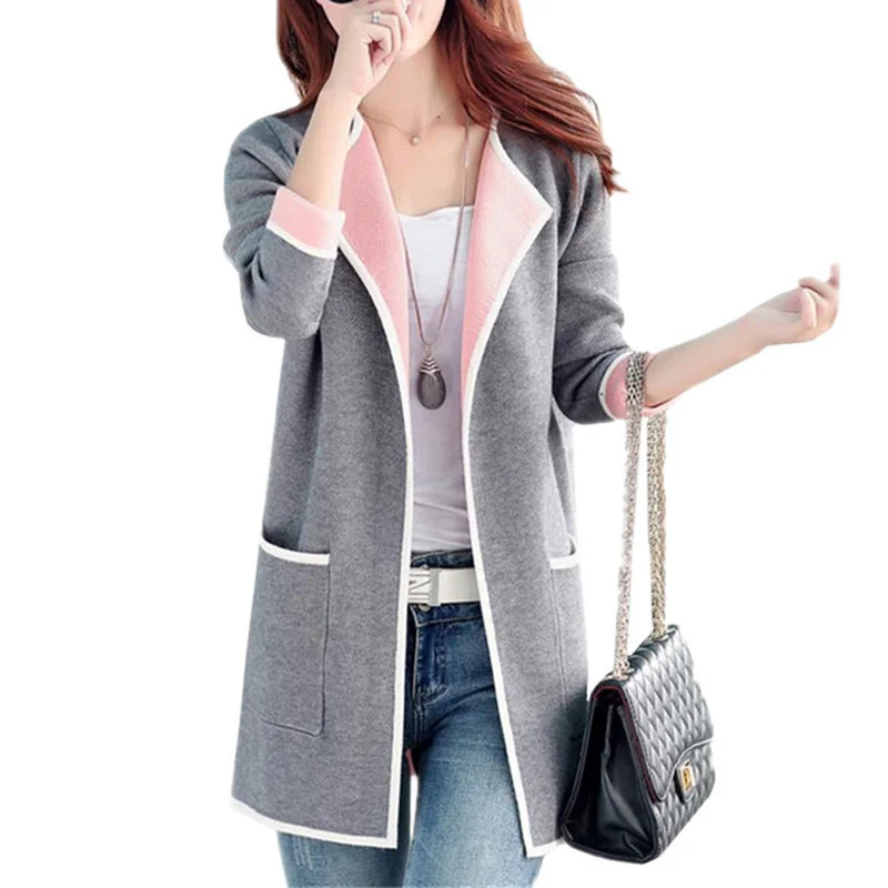 . [Скидка 57%] Купить Женский свитер большого размера, новинка, весна осень, Женский вязаный кардиган, свитер, длинный женский Повседневный серый вязаный свитер, ... Цена Дешево.